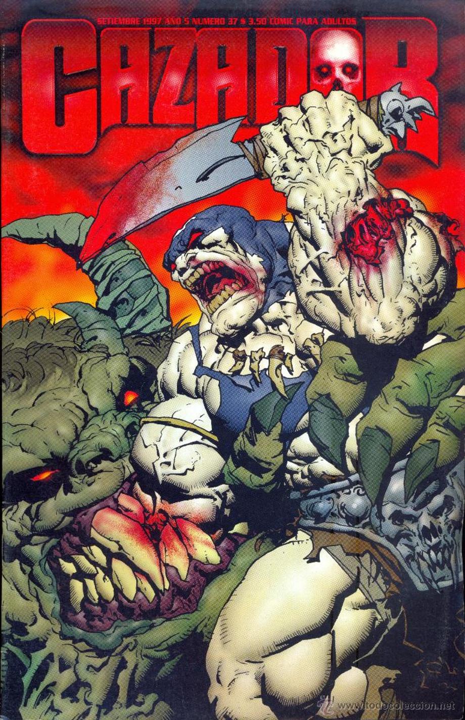 The Cazador deeds reach an end when he’s made prisoner of a shamans’ tribe who burn and mark an inverted cross in his forehead (the Christian cross he defended so much), forcing demonic spirits to possess him, affecting him with what they consider the worst punishment for a living being: immortality. El Cazador escapes, kills and devours his own followers, and throws himself from a cliff to escape from the demons that haunt him, only to discover he hasn’t died from the fall. From that moment, El Cazador will die many times before enemies that oversize him in strength, but will resurrect some hours later.