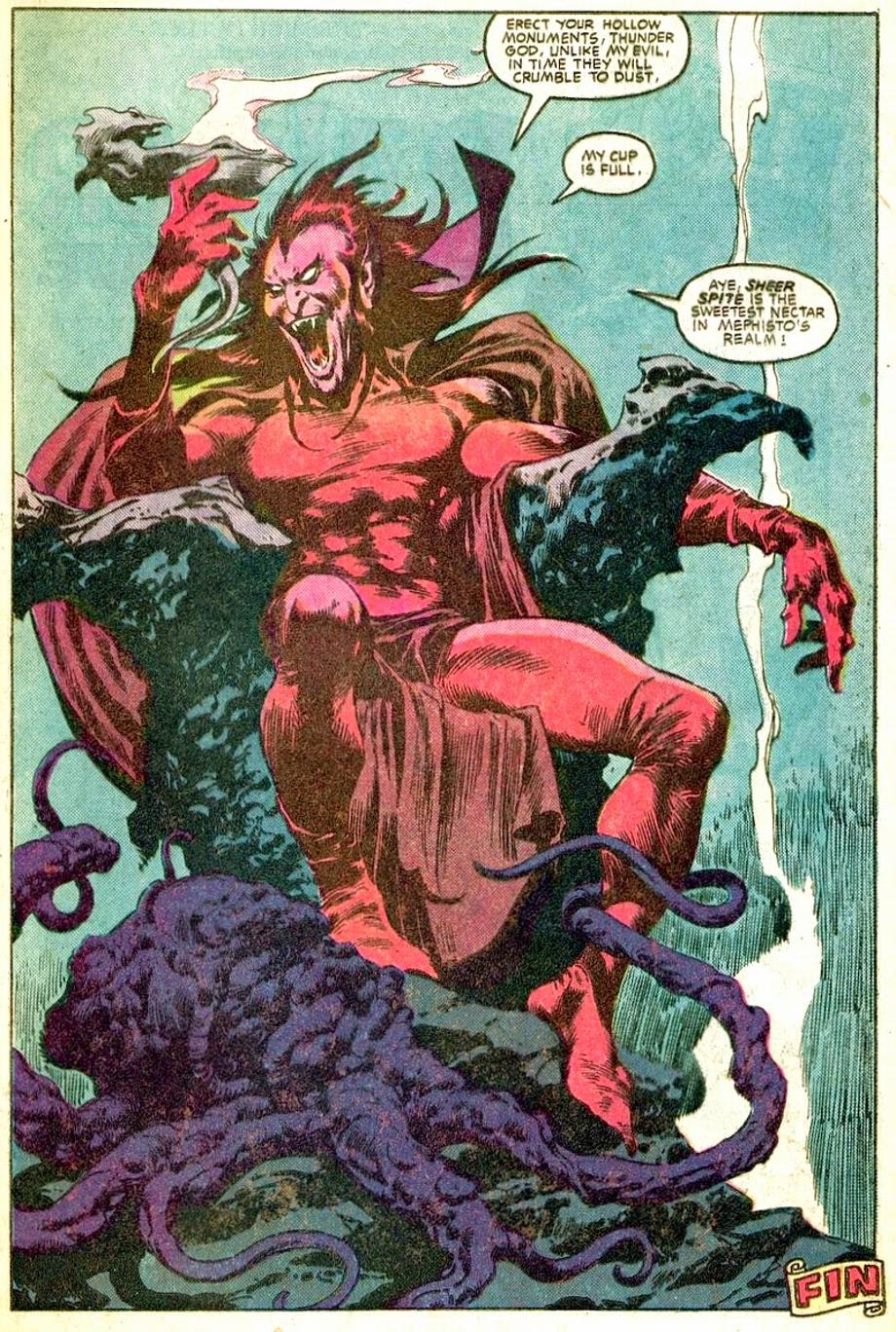 As a kid, I always loved Mephisto. Introduced in "Silver Surfer" #3 back in 1968 by Stan Lee and John Buscema, he's basically Marvel's version of the Devil and he'd make an incredible addition to the MCU as either a major or minor character, especially now that Marvel is dabbling with the supernatural in their efforts to bring Doctor Stephen Strange to the screen. Mephisto is powerful enough to go one on one with guys like Thor and the Silver Surfer but chooses instead to be the ultimate manipulator, even going so far as to play head games with Thanos during the "Infinity Gauntlet" (1991). What motivates Mephisto is the accumulation of souls in his pocket dimension and to accomplish this he often enters into pacts with his victims that initially appear to work in his victims' favor but ultimately work against them. From Spider-Man to Doctor Doom's mother, Mephisto's list of victims is endless and very rarely does he seem to come out on the receiving end of any kind of superhero beat down (although Franklin Richards did kick his ass one time pretty convincingly).