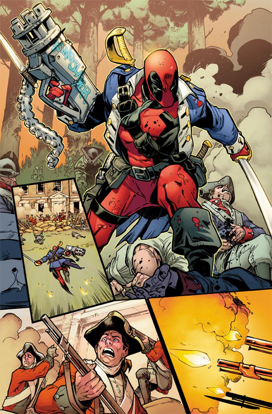 “Deadpool's gone back to key points in American military history: the Battle of Germantown during the Revolutionary War; Gettysburg during the Civil War, and then... well, I can't say anything else, because you know how one little musket ball has a funny of changing the course of human events,” says series writer Duane Swierczynski. Harkening back to the earliest days of X-Force, this series promises to offer a time-jumping tale featuring that truly resonates the style and tone of the 90’s as Swierczynski is quick to emphasize, “OH THERE WILL BE GUNS, 90s style, although in some cases they'll be fused with some old-school killing machines.”