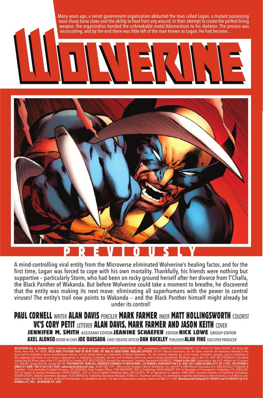What's being called "the biggest Wolverine event in years" begins in Wolverine issue #8, which sees Logan travel to Wakanda only to receive a bit of a harsh welcome from Black Panther. Check out a lettered preview after the jump..