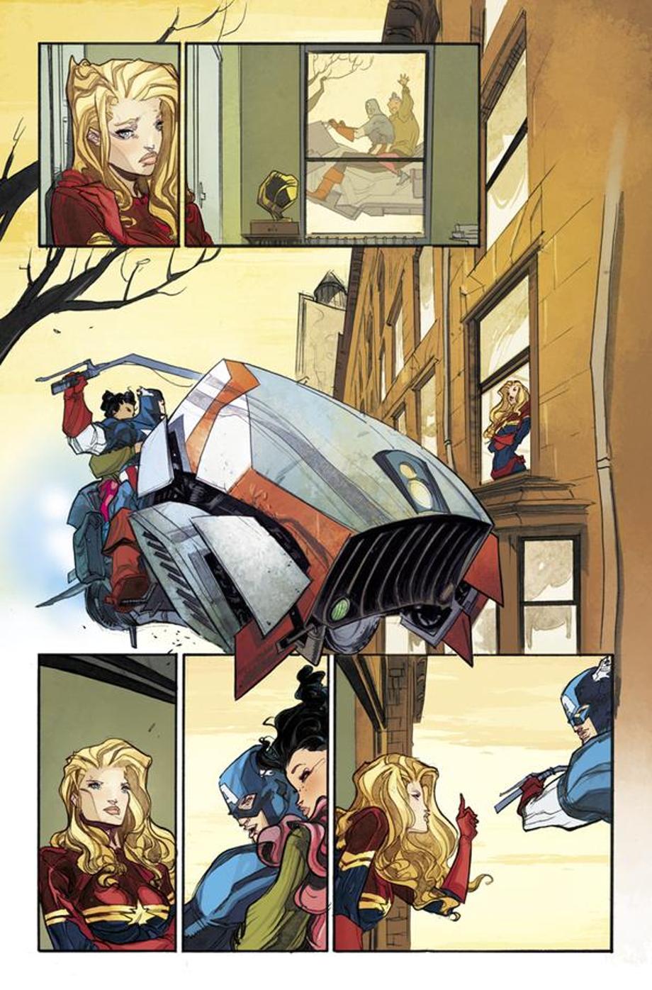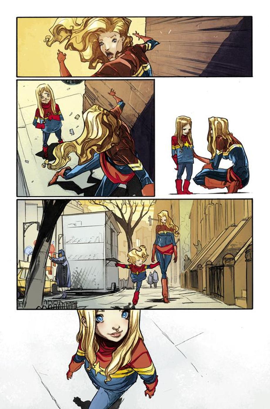 It seems Carol Danvers is going to have to get used to life as a superhero without her flying abilities! But another Captain is on hand to cheer her up in this four page preview for issue #10 of the excellent series from Kelly Sue DeConnick.