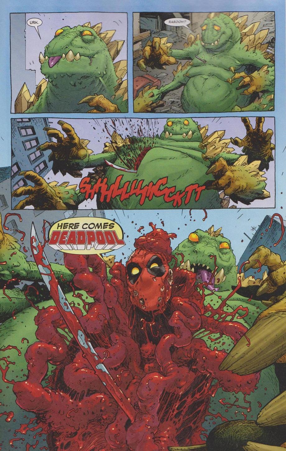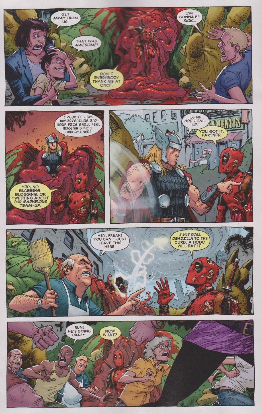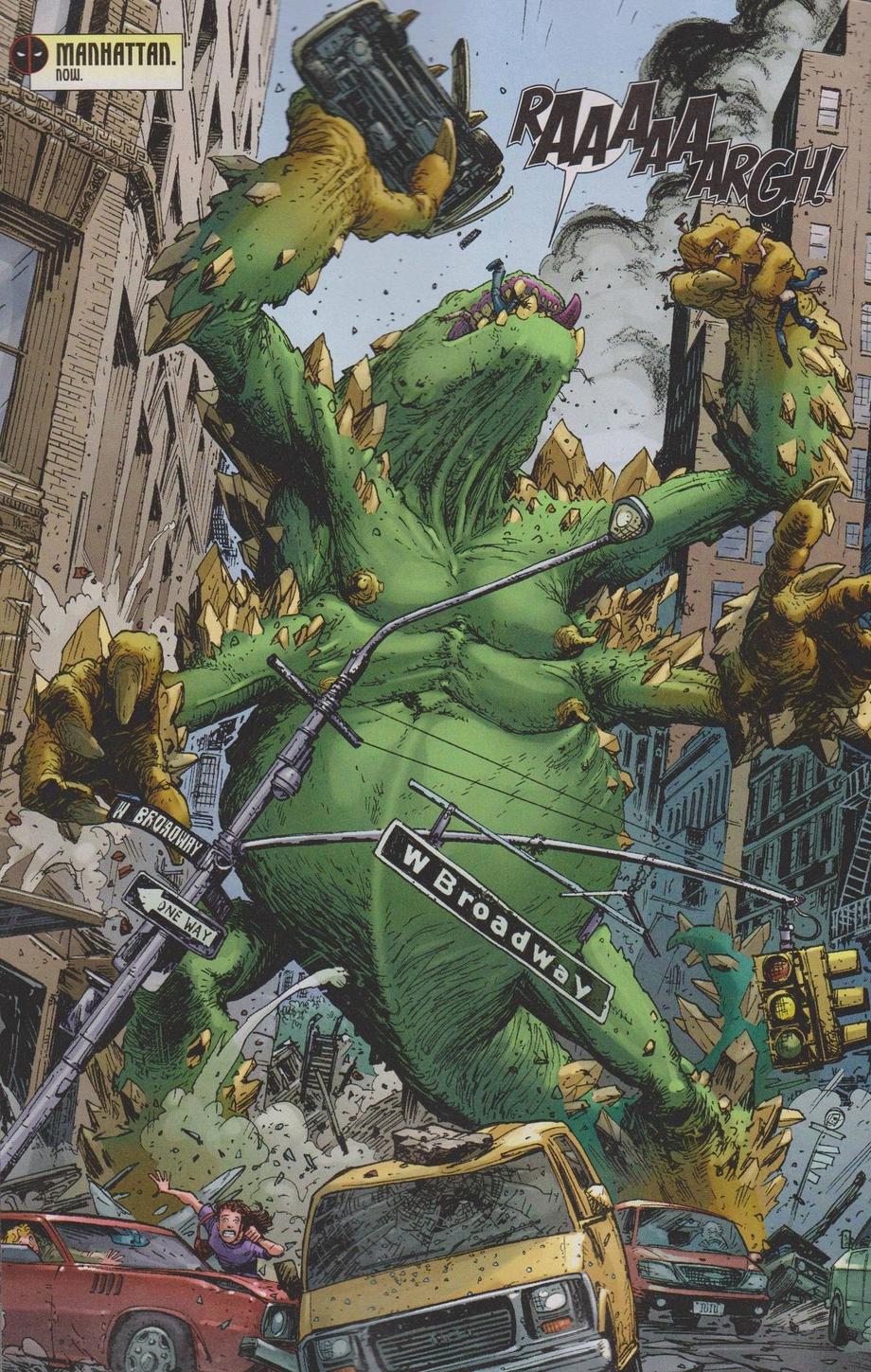 In this first look at the Merc With A Mouth's new "Marvel NOW!" series from the creative team of writers Gerry Duggan and Brian Posehn, and artist Tony Moore, we see Deadpool facing off against a dinosaur and fighting side-by-side with the Mighty Thor!