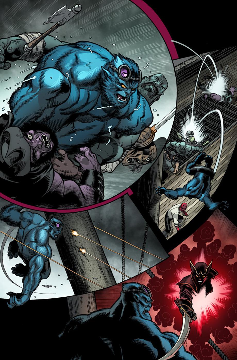 As the team finally make contact with Nightcrawler, Azazel and his troops force Hank McCoy to let his animal side take over and the results are not pretty. Check out an unlettered preview of January's issue of Amazing X-Men after the jump.