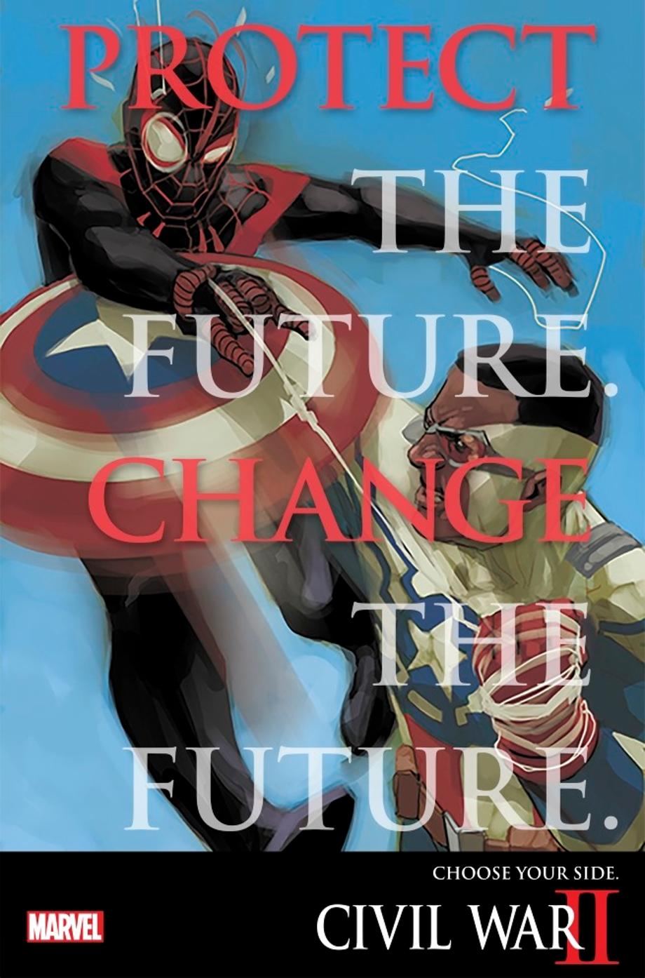 With the Marvel Universe now all in one reality, how does the superhero community differentiate between Miles Morales Spider-Man and Peter Parker Spider-Man? For that matter, with Steve Rogers set to return as Captain America, will Sam Wilson still don the red, white and blue and still go by Cap, as well? On the cover of Civil War #1, we see Spider-Man and Falcon on oppossite sides, with Sam Wilson supporting Iron Man (Protect the Future.) and Peter Parker supporting Captain Marvel (Change the Future.). Does Morales fighting Wilson indicate that the two Spider-Men will be on the same side?