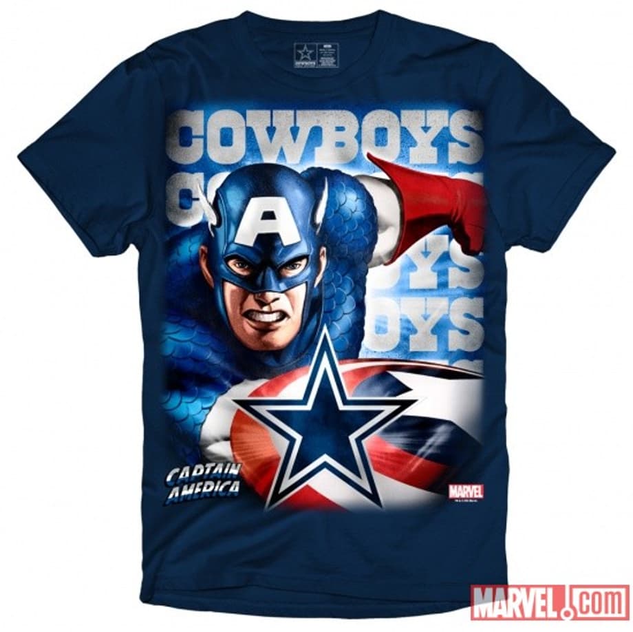The clothing line will have characters such as Captain America, Spider-Man, Iron Man, Thor, and many other Super Heroes decked out in Cowboys' team colors, logos and jerseys.