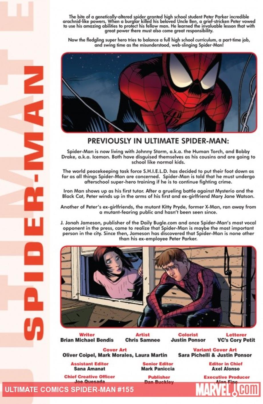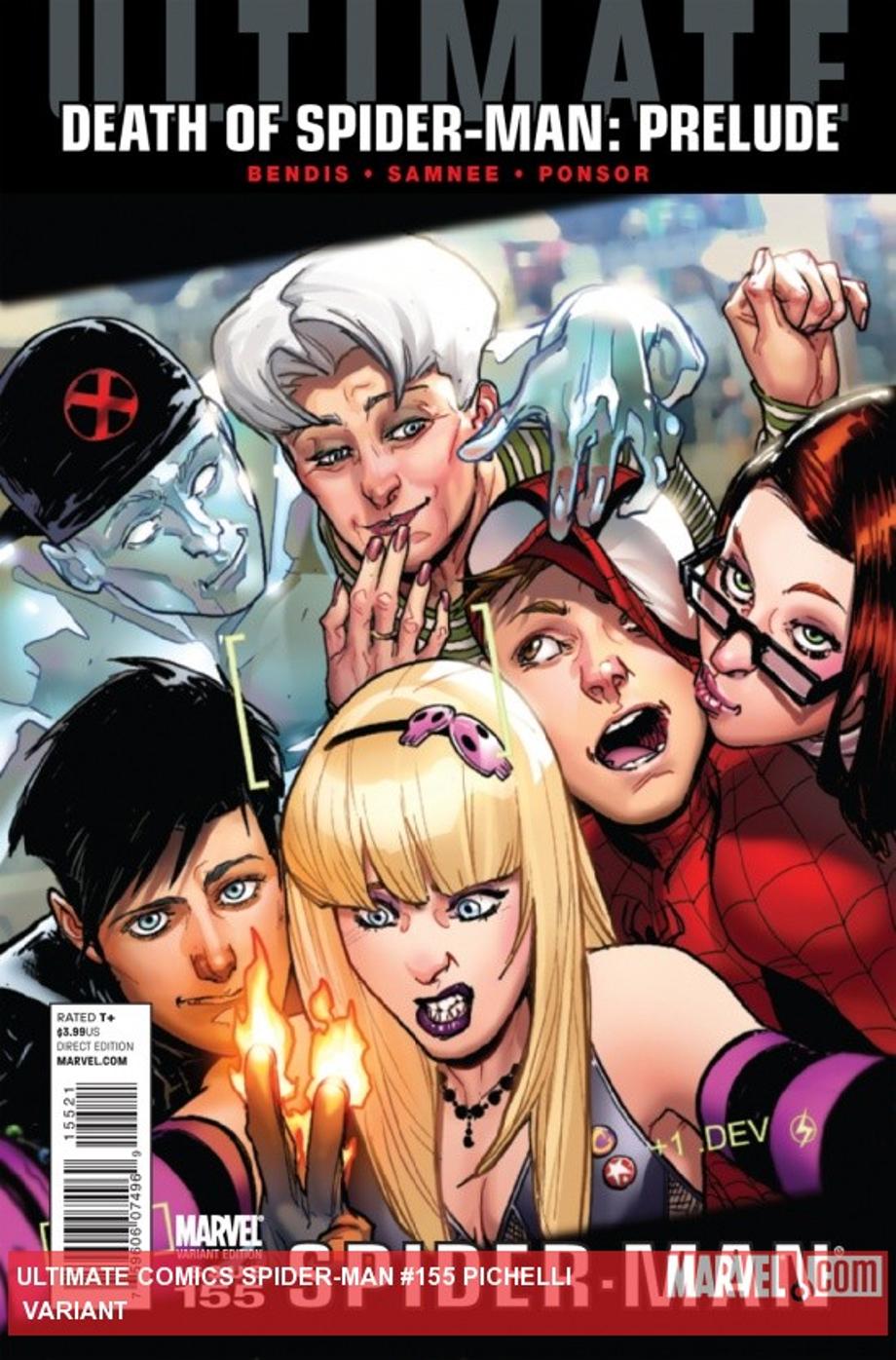 THE STORY: THE END STARTS HERE! The Death of Spider-Man prologue!! THE most talked about story of the year begins! Peter Parker has gathered his most eclectic group of friends and family in the world. In this very special issue we will discover some shocking secrets that will either pull them closer together or push them apart forever. Welcome to Spider-Man stories you have never read before. Welcome to the beginning of the end of what you know to be Ultimate Spider-Man. And welcome Fan-favorite Chris Samnee as he makes his Ultimate Universe debut!