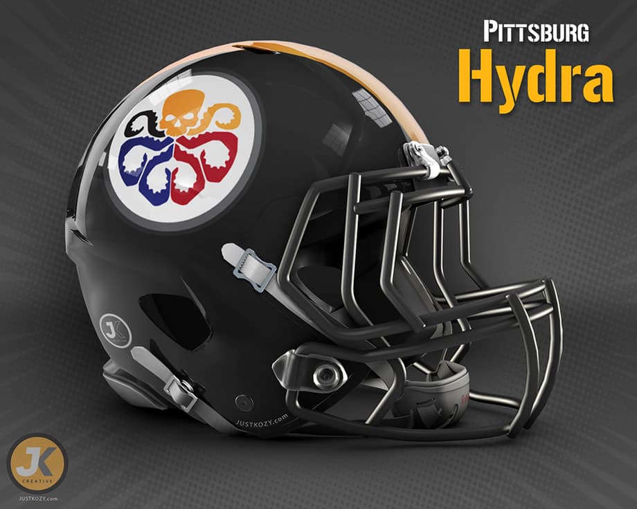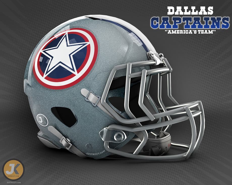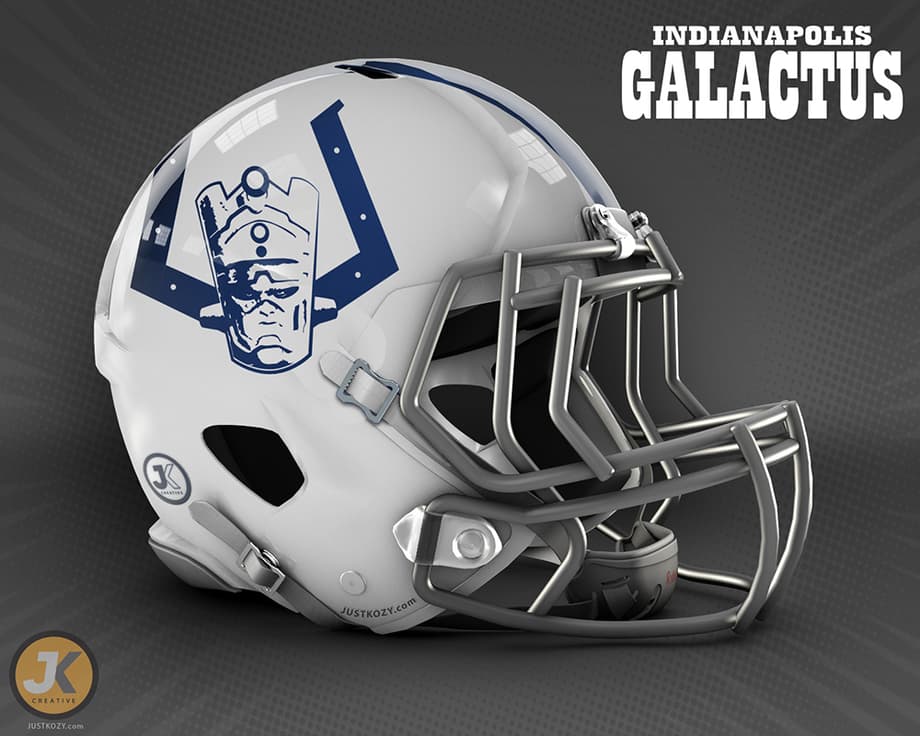 So we have all seen the Star Wars themed helmets designed by John Raya circulating around the internet. Now artist Justin Kozisek offers us a slightly different twist on the same motiff with Marvel themed NFL team helmets and logos. So which team would you root for? Leave your thoughts in the usual place.