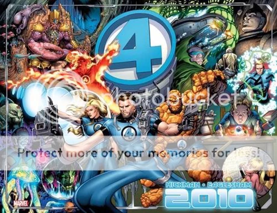 The most recent tease is the Fantastic Four image that has just hit and which gives us an idea of what is coming for Marvel’s first family in 2010. It’s especially interesting when you take it hand in hand with the image below. What a big year they’re going to be having!