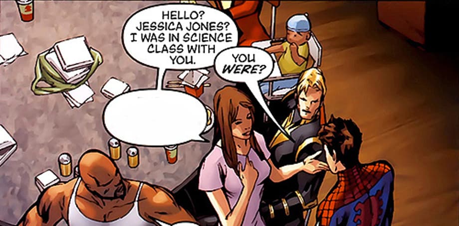 Jessica Campbell (Jones after she was adopted) was classmates with Pete and Flash. After her coma, she went back to good ol' Midtown High (the school for all Spider-related heroes), where she was kind of a wallflower. In school, she was infamously called...
