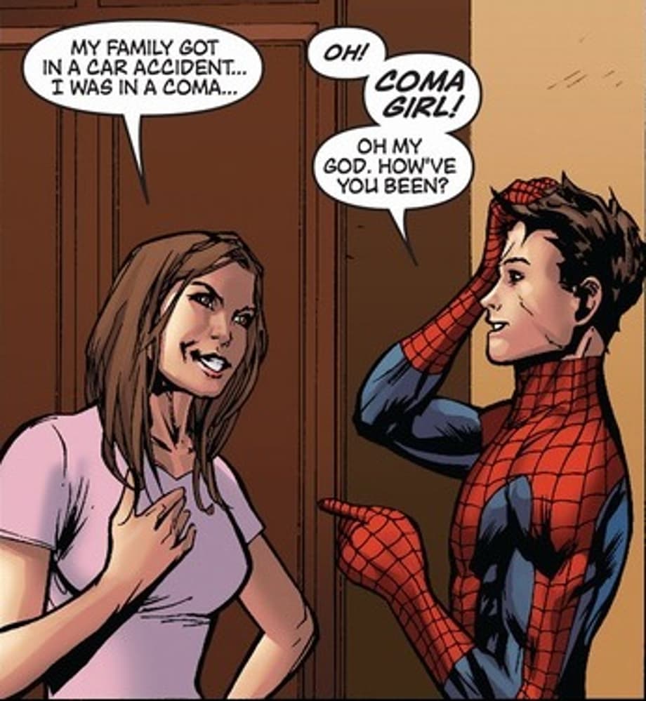 So what does this mean? Will Marvel show her origin story? Does that mean we'll see Spidey references? In the comics, Spidey doesn't actually tell his identity (this comic took place after he went to see Mephisto in that horrible arc story).