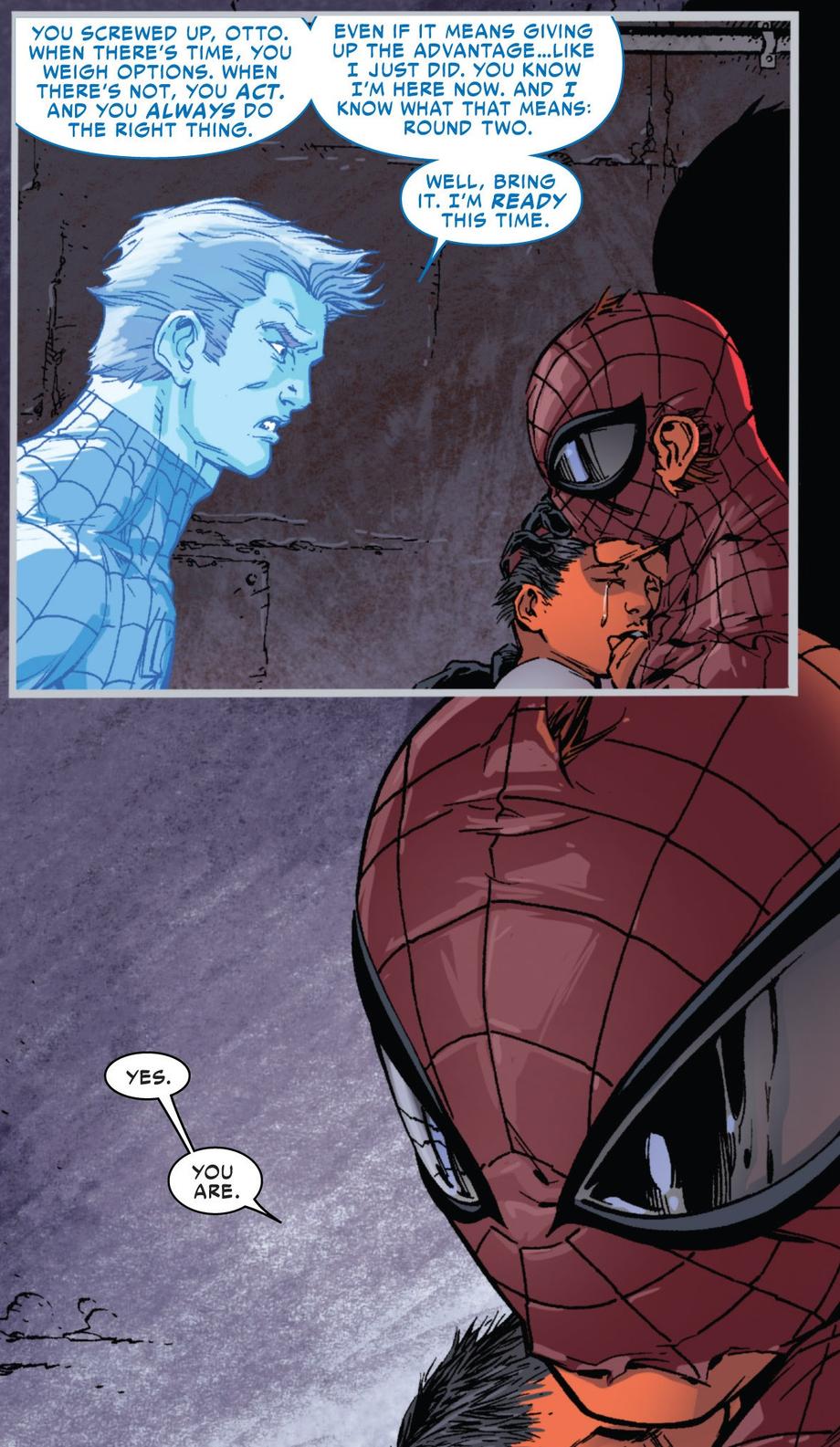 We're still left with a lot of questions of course. Has Doctor Octopus truly purged all of his memories for Peter's mind? Where is his body? How will Peter convince The Avengers and his friends that he wasn't responsible for Spider-Man's actions of late? What will he do about SpOck's newfound love Anna Marie? We'll have to wait for issue #31 to find out...