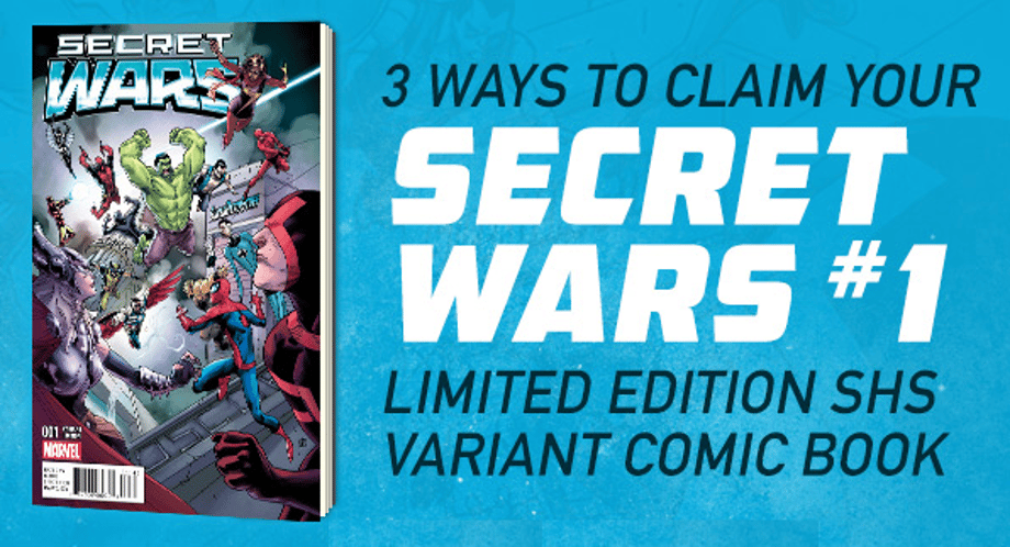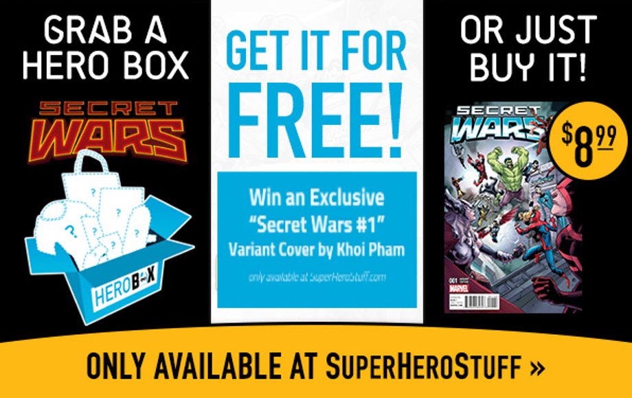 Get a SECRET WARS HERO BOX jam-packed with a limited edition Secret Wars #1, Marvel t-shirt, Funko POP! Figure, and $70 worth of Marvel goodies!