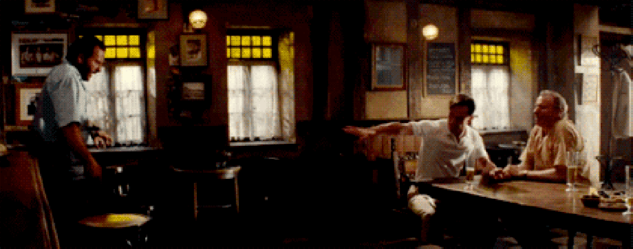 1. Mr. Earle fires Fox, "Didn't you get the memo?" At the end Fox takes his job and repeats it to him.