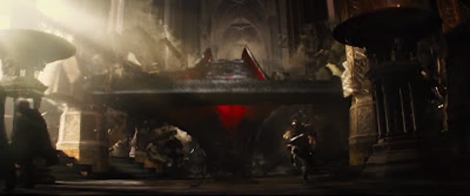learn all about him here). Malekith and the rest of the Svartalfheim, we learn, were banished in an ark 5,000 years ago by Thor's grandfather. It is this ark that we see crashing through the halls of Asgard in the recent trailer and Eccleston says he and his Dark Elves have their revenge and that he will confront the All-Father in his own throne room. Knowing that the Dark Elves will invade Asgard, it should come as no surprise when Taylor reveals that they "will be killing Asgardians" in