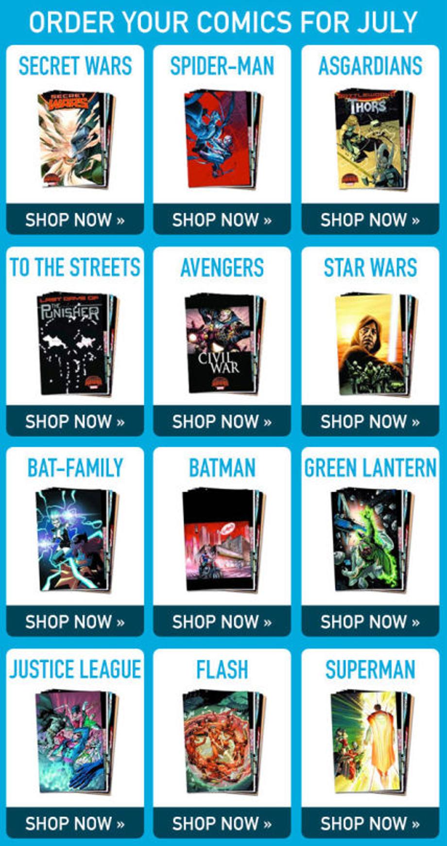 So if you wanna see what Batman is up to these days? Check out the Batman Binge! What about the Guardians of the Galaxy; is Star-Lord still abusing his powers of pelvic sorcery? Guardians of the Galaxy Binge go! What about Secret Wars, the universe condensing cross over event from Marvel? Oh, we have you covered! Comic Binges are a great way to collect comics or jump right into a new character’s story!