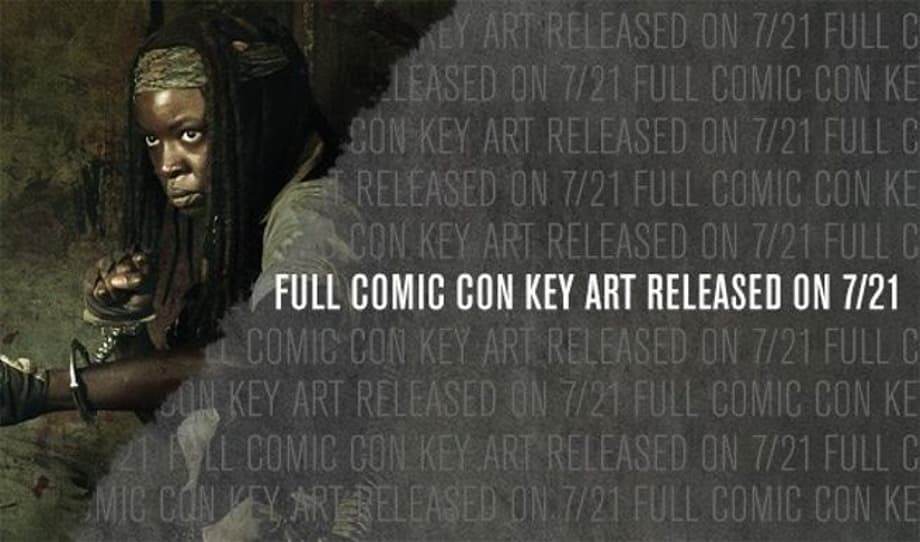 Hey, if we can put up with teasers for trailers I guess we can also put up with teasers for posters. Hit the jump to see a sneak of The Walking Dead season five Comic-Con poster. The partial image reveals Michonne (Danai Gurira) in handcuffs.