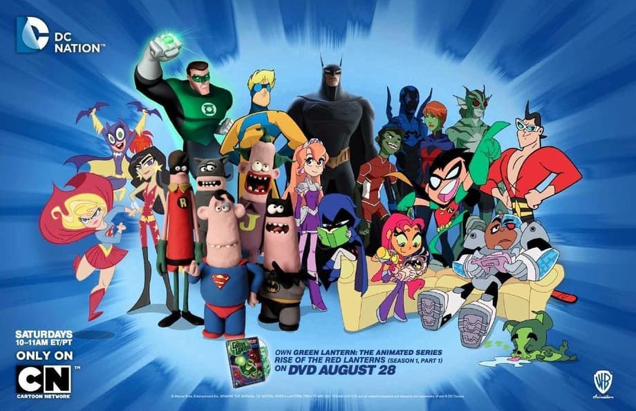 The people over at Worlds Finest has posted a new poster for the DC Nation block of Cartoon Network. The poster has debuted for this years San Diego Comic Con and features all of DC's current and up coming cartoon lineup for the programing schedule such as Green Lantern The Animated Series, Teen Titans Go!, as well as many others. If you take a look at the poster you will notice a new image of Batman from his upcoming return to animation Beware The Batman.