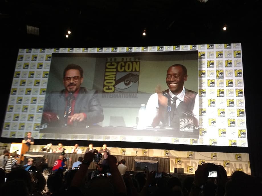 Ant-Man would kick our asses "One inch at a time". The footage was a little short, we wanted more! Wright asked us if we wanted to see it again, but left the stage as soon as we replied. What a tease! What a day it had been until the man himself, Robert Downey Jr. entered. Trust me his entrance was marvelous, everyone stood up (on their chairs), and cheered. Equiped with an Iron Man armor prop on his right hand, the fans were probably anticipating some announcement in the direction of "Extremis". We had to first tell him how much we loved him before the panel could proceed. Every minute of it was amazing. Shane Black, Jon Faverou, and Don Cheadle came on stage, and we were ready to see some first footage of the third Iron Man installment. Ben Kingsley is the Mandarin! It's final Shane Black confirmed it, and he looks stunning.
