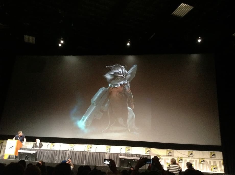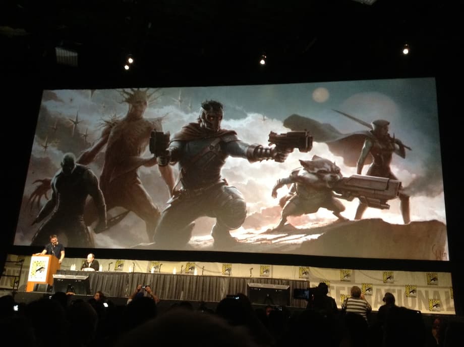 There were besides these already great announcements, two more that would blow a lot out of proportion. A teaser concept art image for Rocket Racoon was shown, and the crowd went wild. Next up was a concept art still of the entire team for the