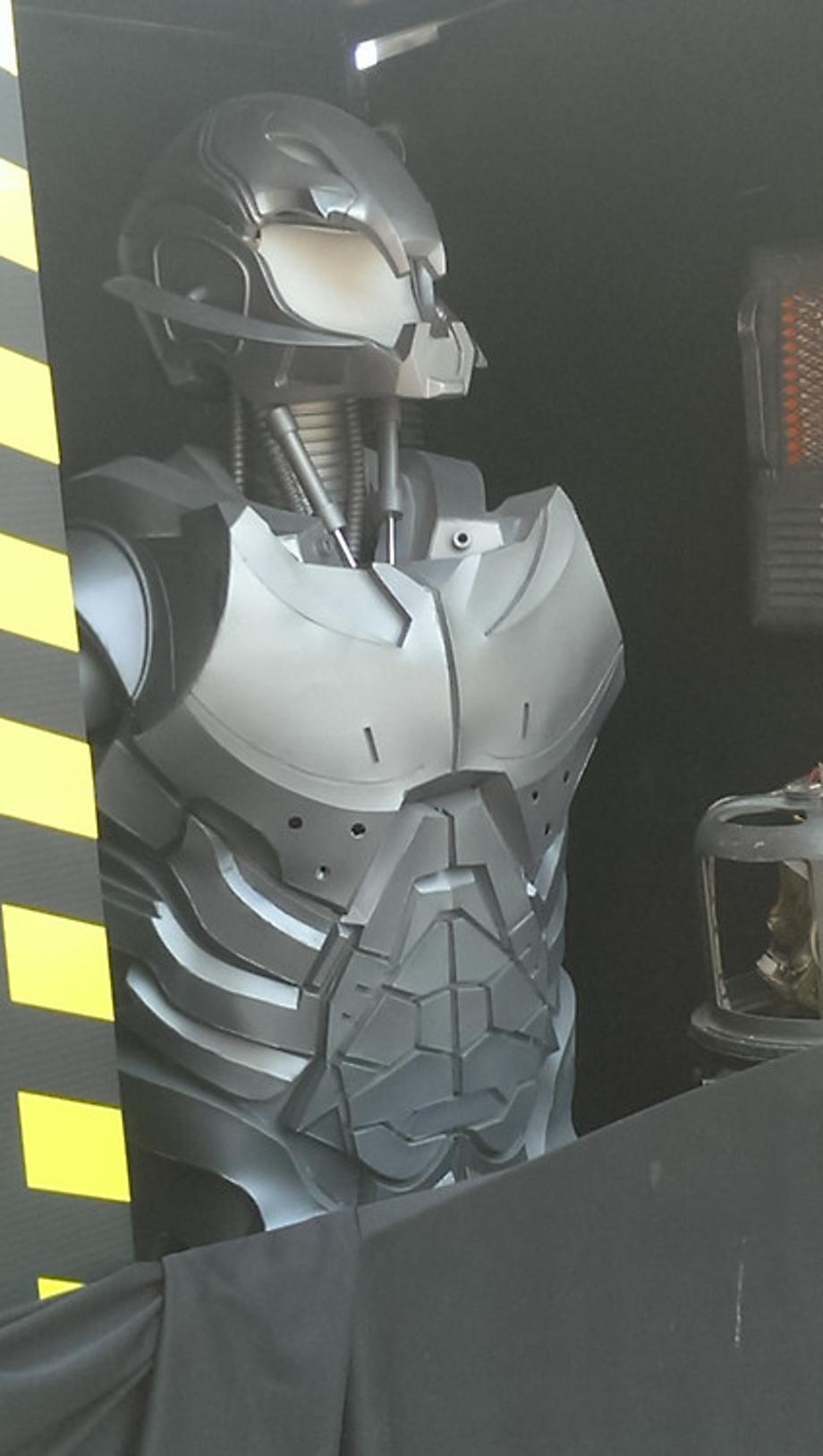 For months, we've known Ultron, the main baddie in Joss Whedon's Avengers: Age of Ultron, would control an enormous drone army. Heck, just this past weekend Marvel Studios released new posters with Ultron's minions battling The Hulk, Quicksilver, Hawkeye, Black Widow, Scarlet Witch, Captain America and Iron Man. Below, is apparently armor from one of those drones and it was supposedly spotted a block away from where the San Diego Comic-Con convention took place.