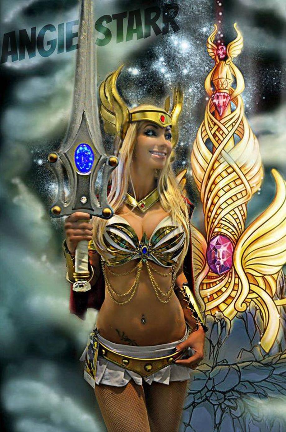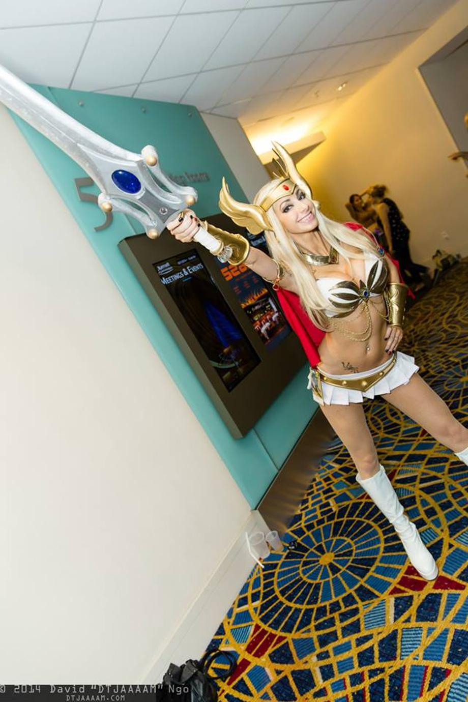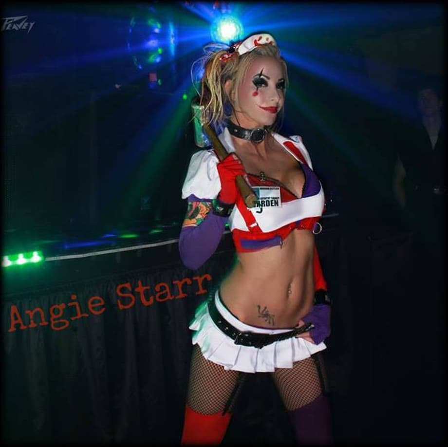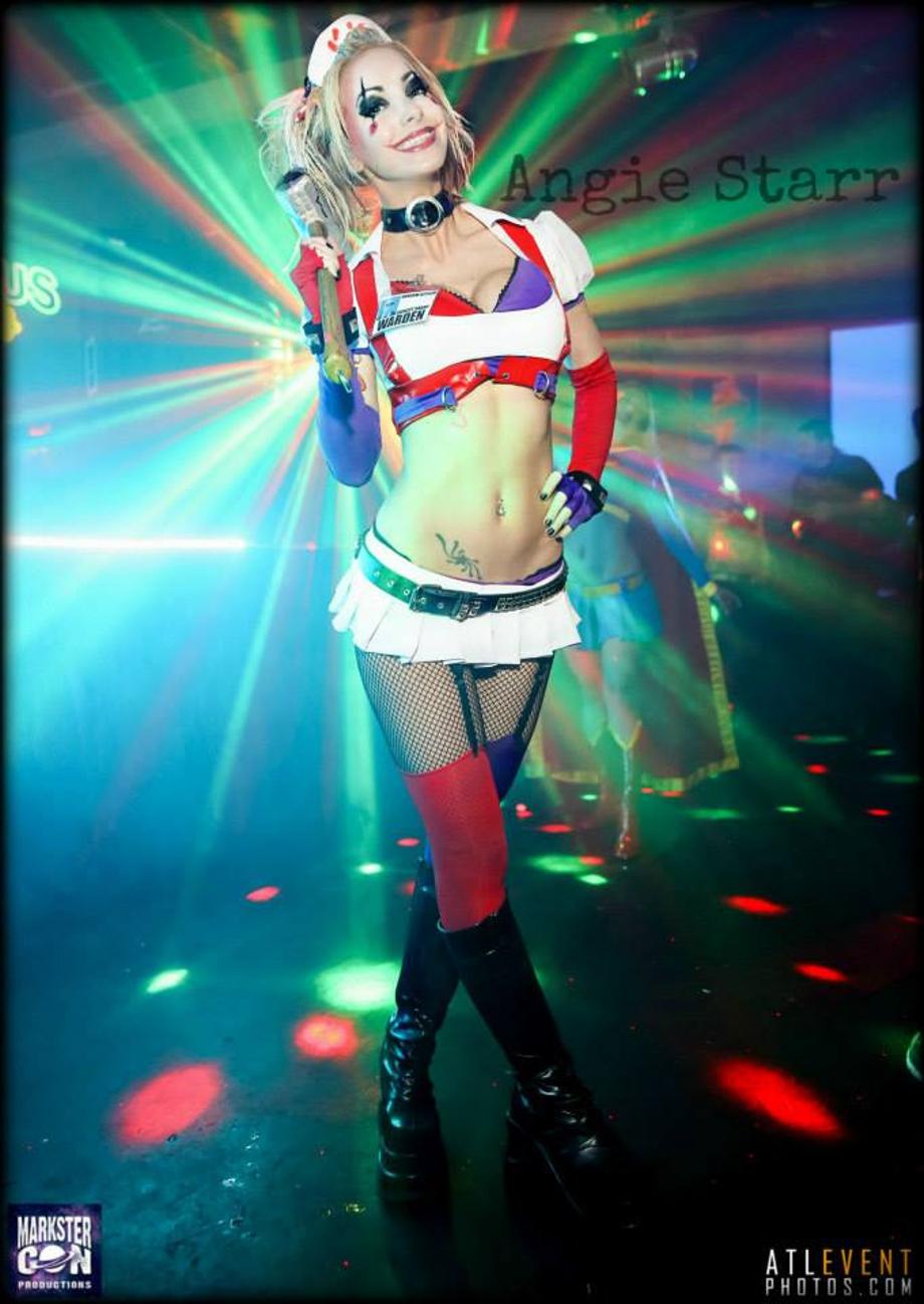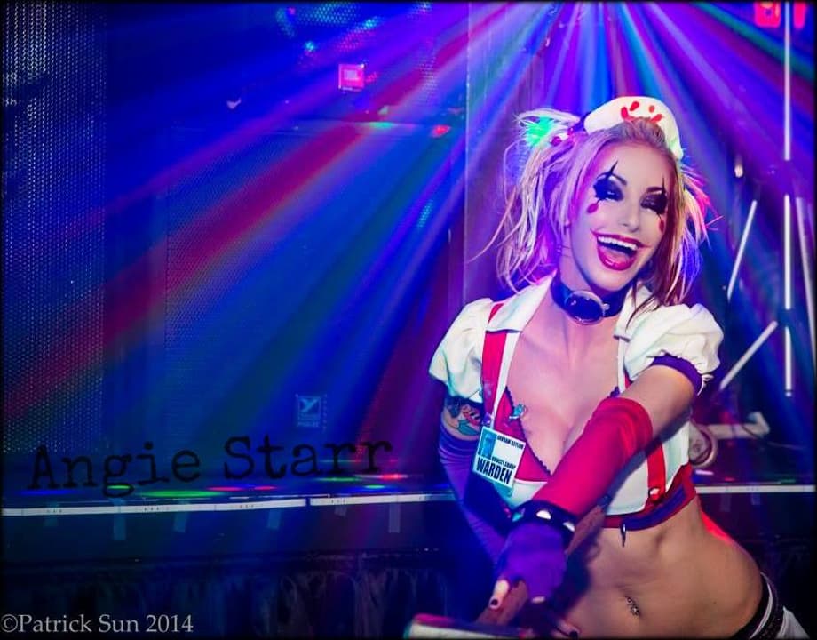 Hit the jump to see cosplayer, model and go-go dancer Angie Starr dressed as Harley Quinn from DC Comics, a Lekku from the Star Wars universe and She-Ra from the animated series She-Ra: Princess of Power.