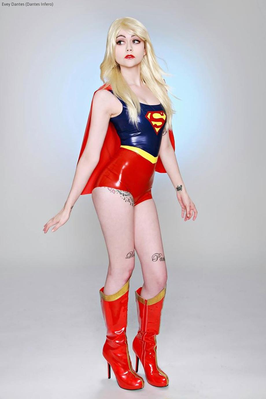 Hit the jump to see the beautiful Australian cosplayer, Evey Dantès (aka Dantès Inferno), dressed as DC Comics' Supergirl (latex), Catwoman from Batman Returns and April O'Neil from Teenage Mutant Ninja Turtles.