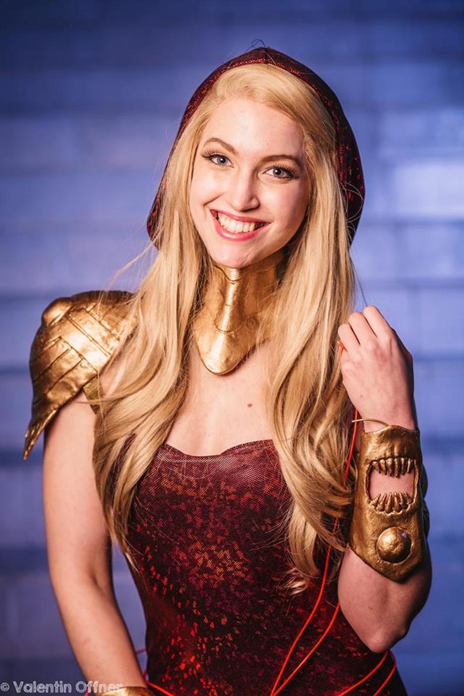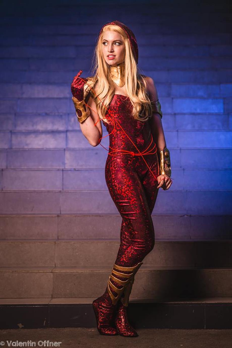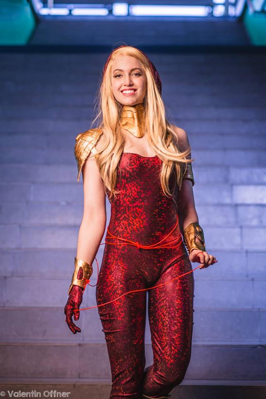 Very beautiful girl. Her Wonder Girl and Huntress suits are fantastic.