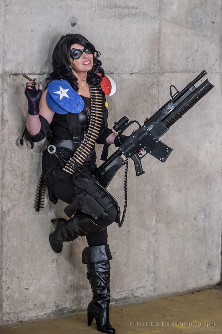 COSPLAY: Krystle Starr As Indiana Jones, Psylocke & The Comedian (WATCHMEN)