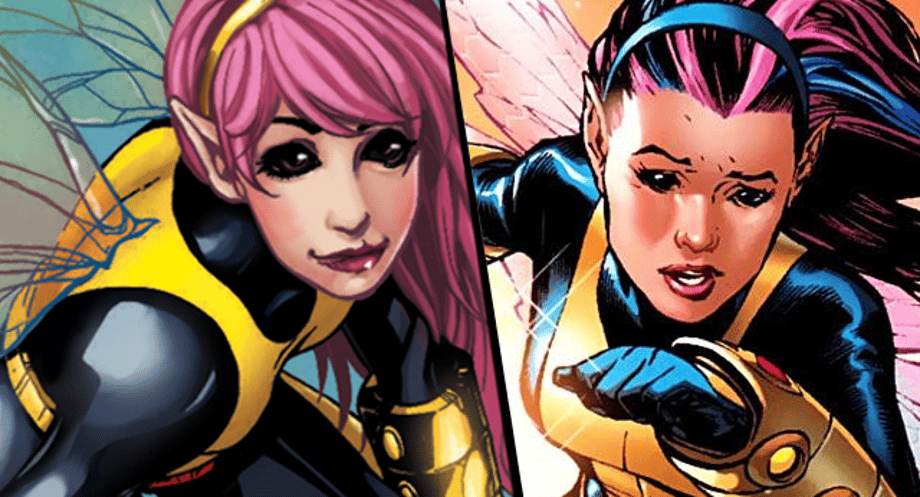 Megan Gwynn is a Welsh teenager from a fictional mining town, called Abergylid ,who's powers manifested in a near-miss road accident involving her bicycle and another car. She could manifest rainbow-colored butterfly wings allowing her to fly with great maneuverability. Her father died in the mine and because of that she develops a fear of the mine. In her original inception, she had short pink hair, pure black eyes and butterfly-like rainbow wings. After enrolling at Xavier Institute, Pixie is assigned to be part of the Paragons training squad under the tutelage of former New Mutant member Rahne Sinclair. She wears a bicycle helmet during training sessions, due to her uncertainty with flying. During this time, she develops a crush on the Cyclops and is considered a cheerful girl who fits in well with other students; she was voted Friendliest Student. - x-men.wikia