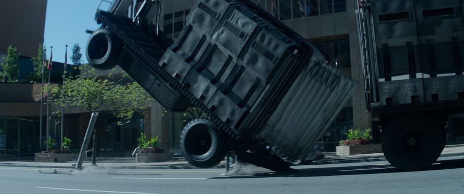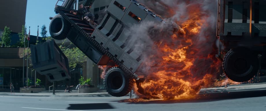 What a difference, eh? Here, a practical stunt is completely changed with visual effects to add an explosion...and Cable! This is one of those things you'd never realise was an effect in the movie itself.