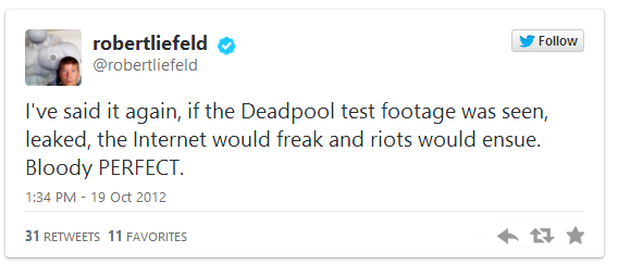 About a week after the HD sizzle reel/test footage leaks on the inter webs, Deadpool creator Robert Liefeld has revealed (through some very telling and quite interestingly opinionated Tweets) that the current script pending approval from 20th Century Fox is indeed a PG-13 cut.