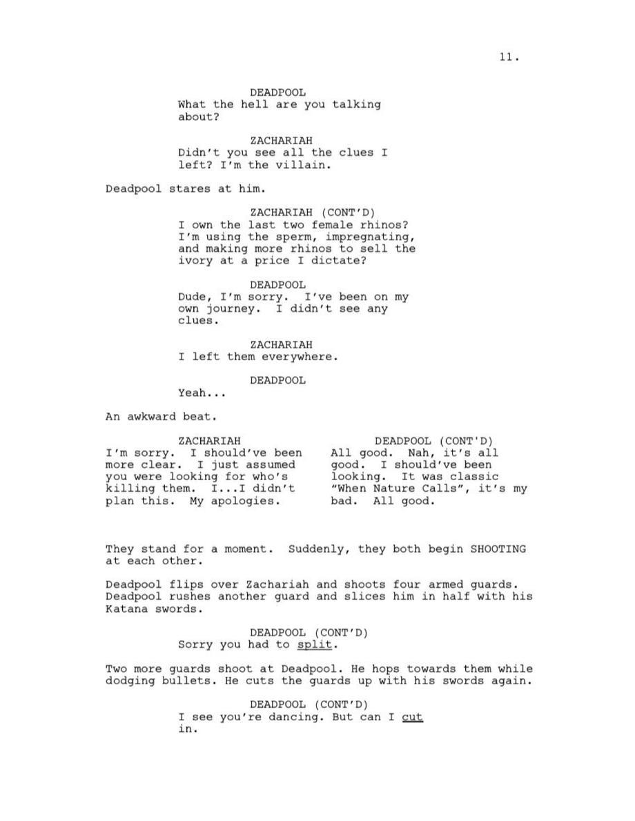 He then proceeded to release a fifteen-page script for the "Finale" of Deadpool: The Animated Series, but as soon as you start reading, it becomes fairly obvious that this isn't an actual script for the series, but a mock script that was likely penned yesterday as Glover references several very recent headlines and takes more than a few not-so-subtle digs at the suits at Marvel TV - possibly revealing what actually happened behind-the-scenes that led to the cancelation of his series.