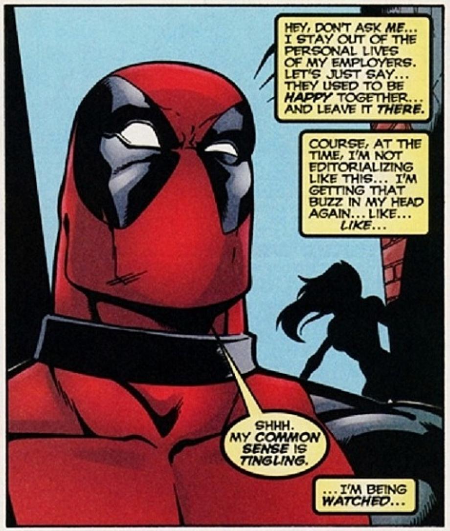 Wit isn't something you find in everyday comedy and it's depressing for me to watch that happen because I grew up on all those eighties British witty sitcoms like Black Adder, Red Dwarf, Only Fools And Horses and Porridge. God, those were the days, when comedy was all about wordplay and sarcasm rather than people falling over or cartoon babies with talking dogs. Anyway, Deadpool's insane and most insane characters tend to be incredibly witty when you put pen to paper because you gotta put yourself in the mind of a madman when you're writing one and by golly, that's a load of fun! Seriously though, Deadpool is a pretty over-the-top, mental kind of a property to deal with so wit is essential otherwise all you're left with is outright goofishness and nobody wants that... Unless they prefer Family Guy over Frasier.