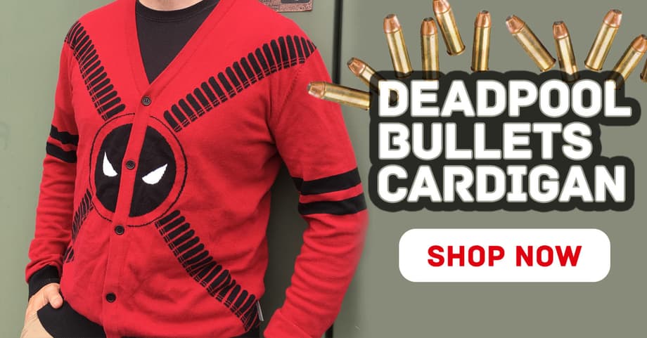 With the explosion of Deadpool's popularity, wares inspired by Marvel's Merc with a Mouth have become somewhat more prolific. That's where the hard-to-find Deadpool Bullets Cardigan comes into play! Some parts of the world are currently in a deep heat bubble but let's be honest...we're only a couple of months away before the cold and dark comes back and at the very least, those nights will start having a bit of bite to them. There are only so many of this Deadpool Cardigan left in the world...we had to pull some serious strings to get this bad-mamajama!