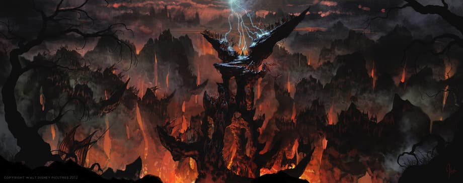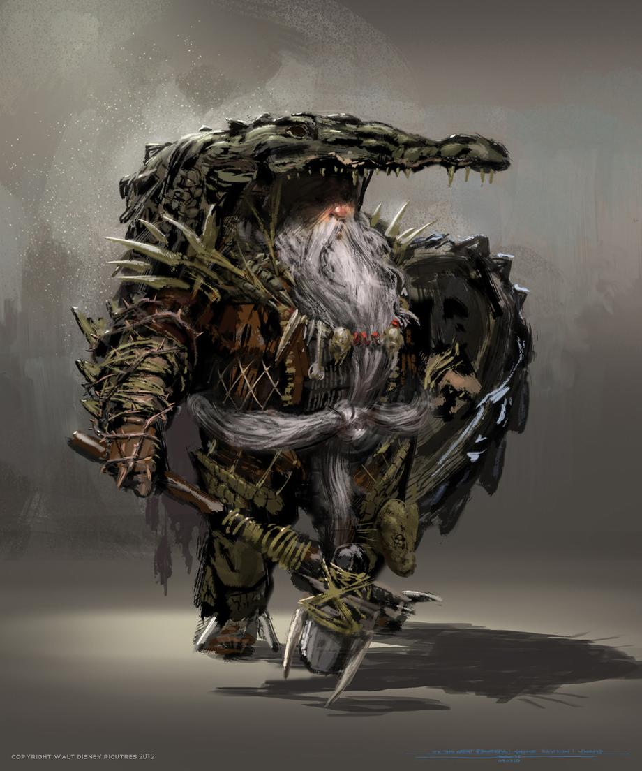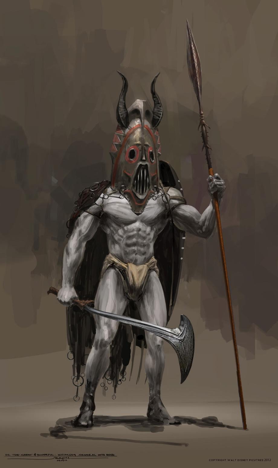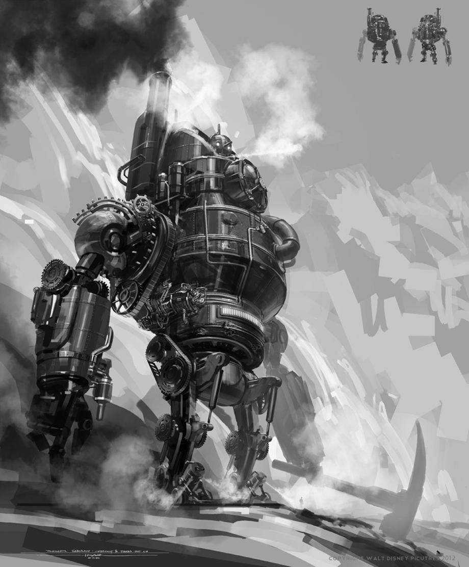 "The idea was floated that at some point we would see where the baboons that Evanora used to do here dirty work came from and so I did some passes on an ominous home for them. The two characters in the center were done very early on for Oz: The Great and Powerful when there were a host of other minor villains from L. Frank Baum's books that we were trying out. The "Steam Bot" at the bottom was an early idea that Sam Raimi really wanted to see, and popped in and out of the movie as we were working on it. In the end it was too expensive and maybe too much of a spectacle and so was let go."