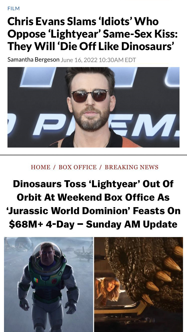 Although Pixar's Toy Story movies are some of the studio's most successful films, Lightyear failed to generate the same type of excitement. The film came under a bit of fire for its inclusion of a same-sex kiss, causing it to be banned in multiple countries, while Disney has also been in the crosshairs of multiple conservative movements for its stance on LGBTQ+ inclusion.