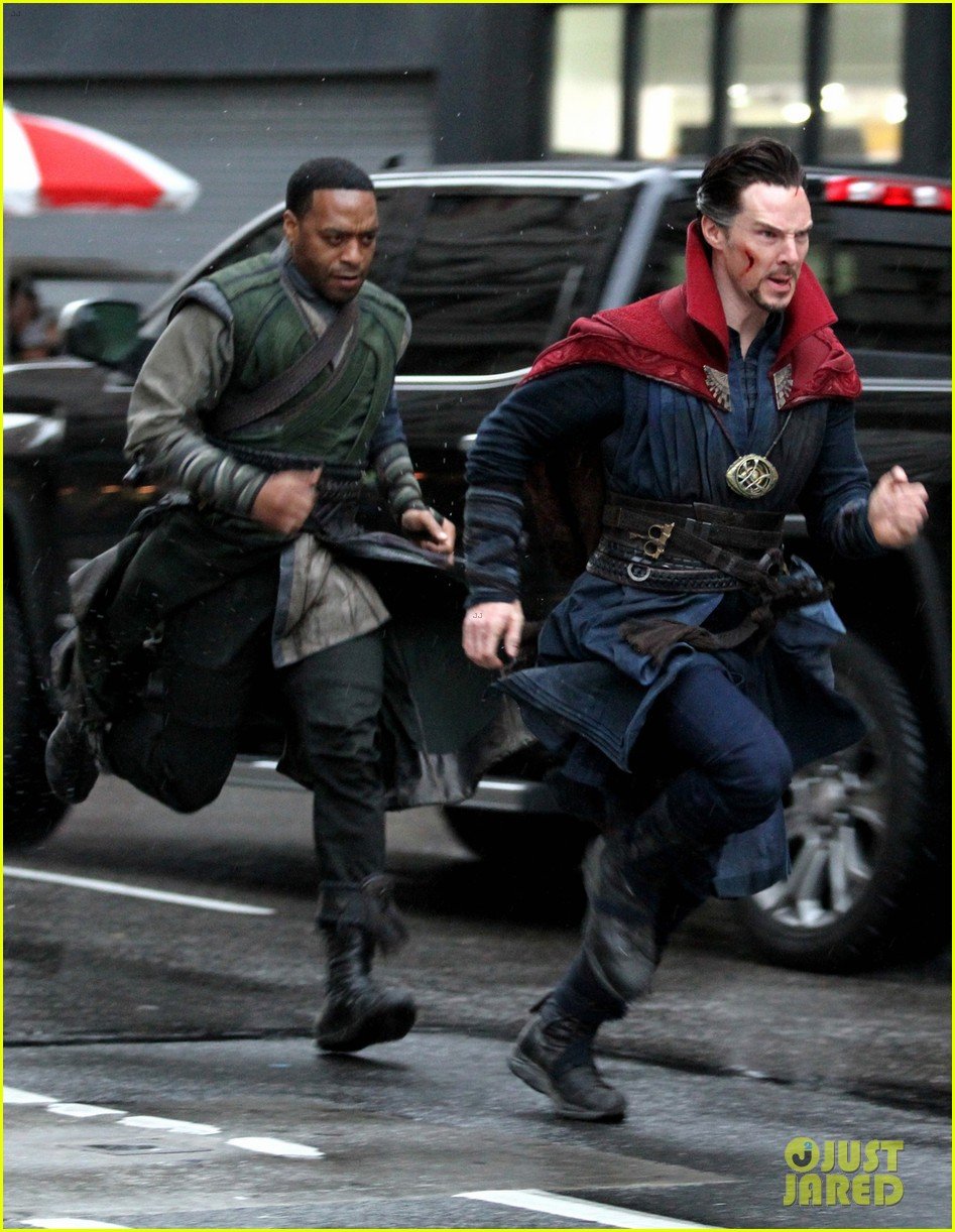 After Captain America: Civil War, there's one more mystical adventure Marvel Studios has in store for us before year's end - Doctor Strange! The Scott Derrickson-directed feature will intoduce us to Dr. Stephen Strange and the hidden world of magic and alternate dimensions. Earlier today, Just Jared released a ton of new images featuring stars Benedict Cumberbatch (The Imitation Game), who portrays the titular Doctor, and Chiwetal Ejiofor (The Martian), who plays friend-turned-foe Baron Mordo, in the midst of filming a crucial action sequence in downtown New York.