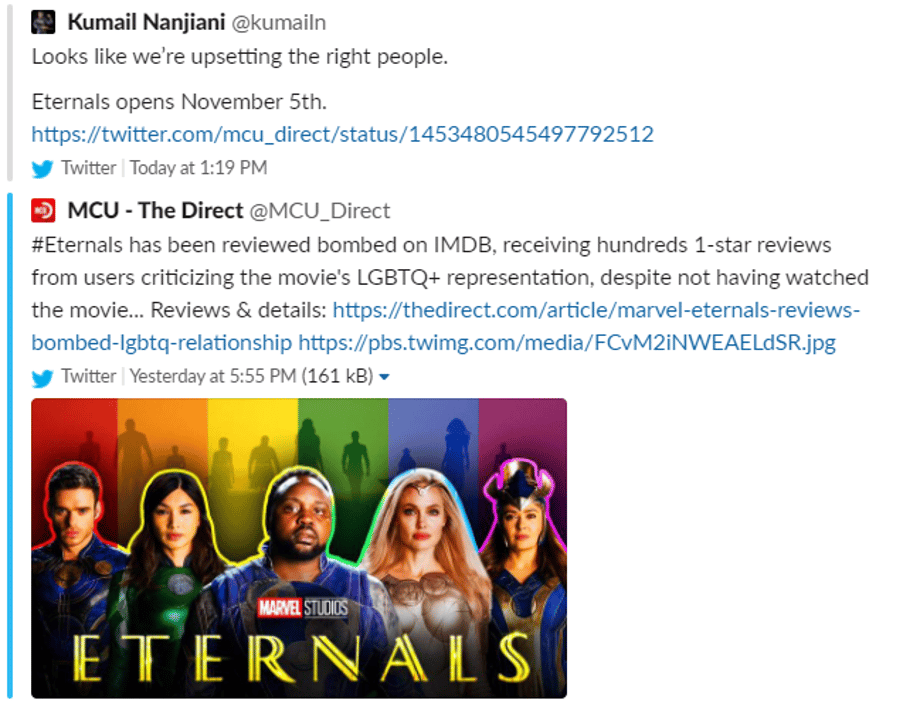 This "review-bombing" tactic has been employed numerous times in the past, but it doesn't seem to have bothered Kumail Nanjiani (Kingo) too much, who responded with the following (since-deleted) Tweet (via CBR).