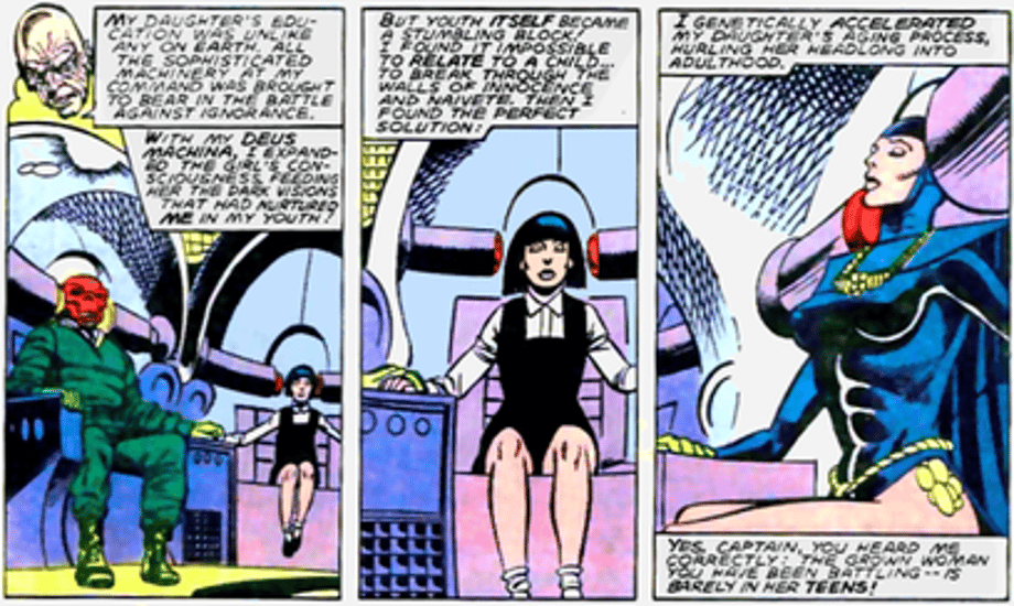Aside from the fact that he’s a Nazi, perpetually tries to kill and maim Earth’s heroes—particularly the sentinel of liberty, Captain America, and constantly seeks omnipotence via the Cosmic Cube, Johan Schmidt is an evil dad. Shortly after the birth of his daughter, he considers killing her! It’s how evil dads say thank you for the miracle of life while aiming for a son. He then robs her of childhood by accelerating the aging process to mature Synthia to adulthood. I’m not saying he brainwashed her…she did end up hating Cap enough to try to kill him as Mother Superior. Furthermore, after she is returned to childhood, he starts the process all over again! I’m sure she sends him the best cards this time of year!