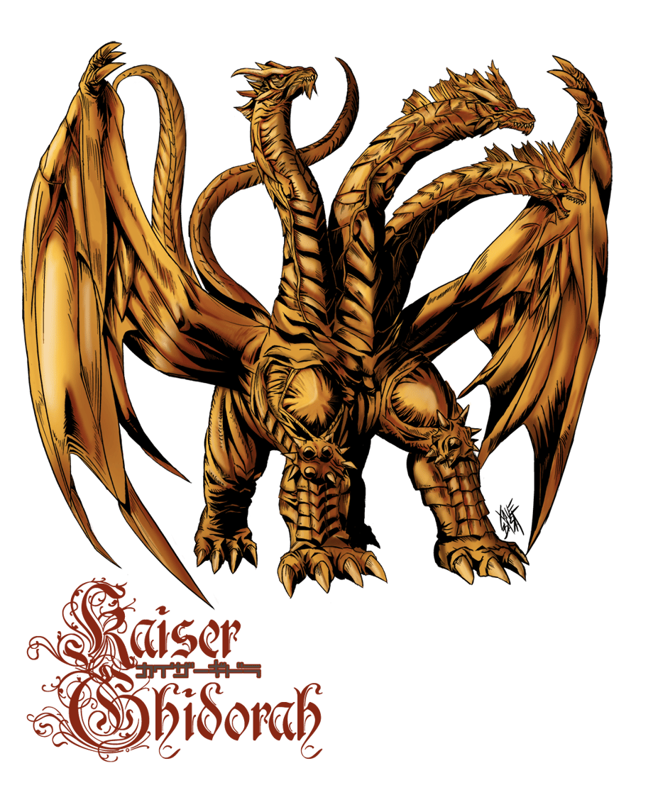 And as for Ghidorah's true form, I thought about this for awhile, and instead of the usual two-winged, two-legged form we all know, I thought a better use of a rarer form, the four-legged behemoth, Kaiser Ghidorah (from "Godzilla: Final Wars" (2004) ), would be appropriate:
