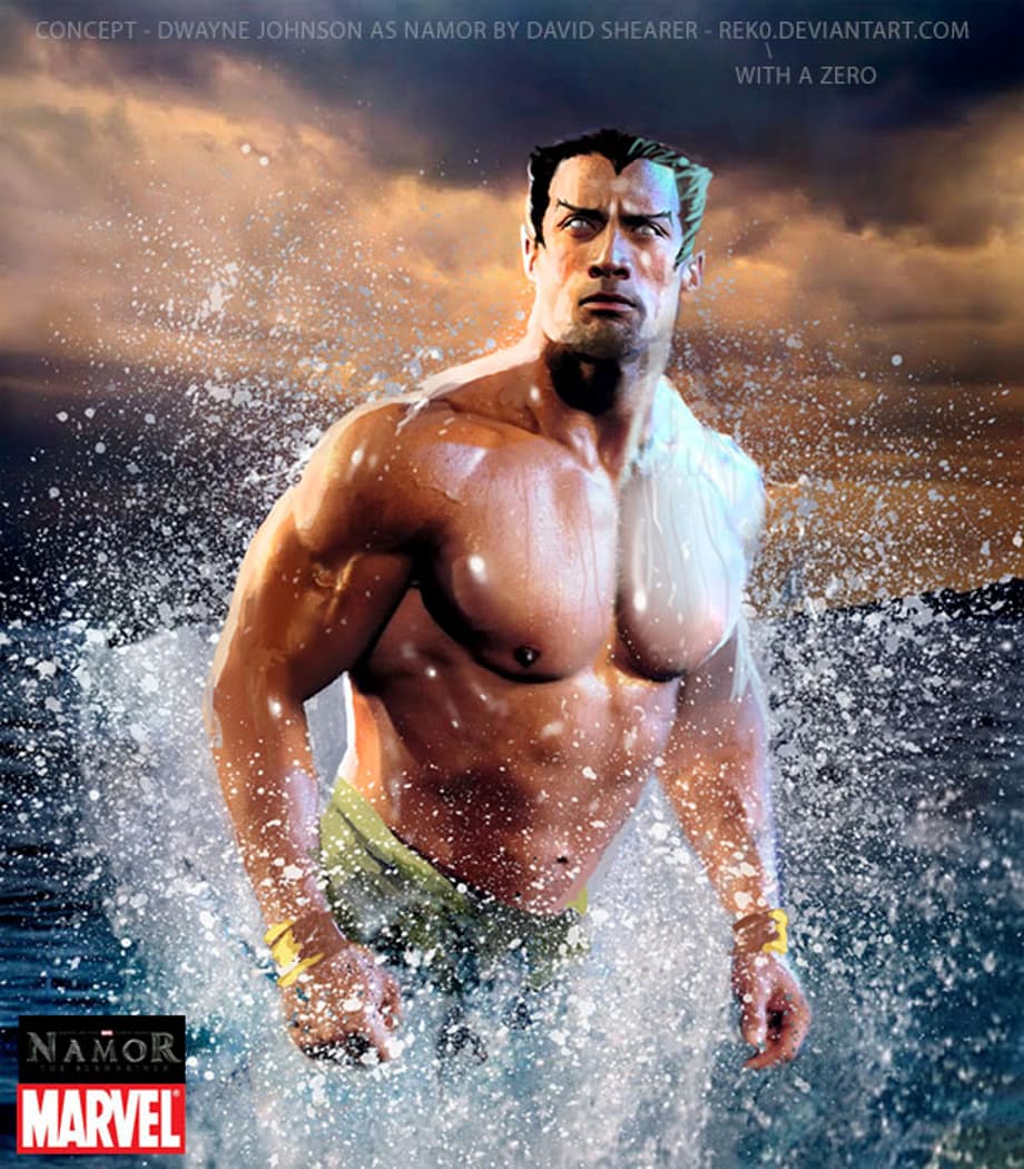 I took a picture of Dwayne Johnson and repainted him as Namor. I felt it was worth seeing and sharing! I recall that he was up for a super-hero role and it could very well be a marvel role. I remember everyone keeps saying black adam against shazam. Anyway enjoy!