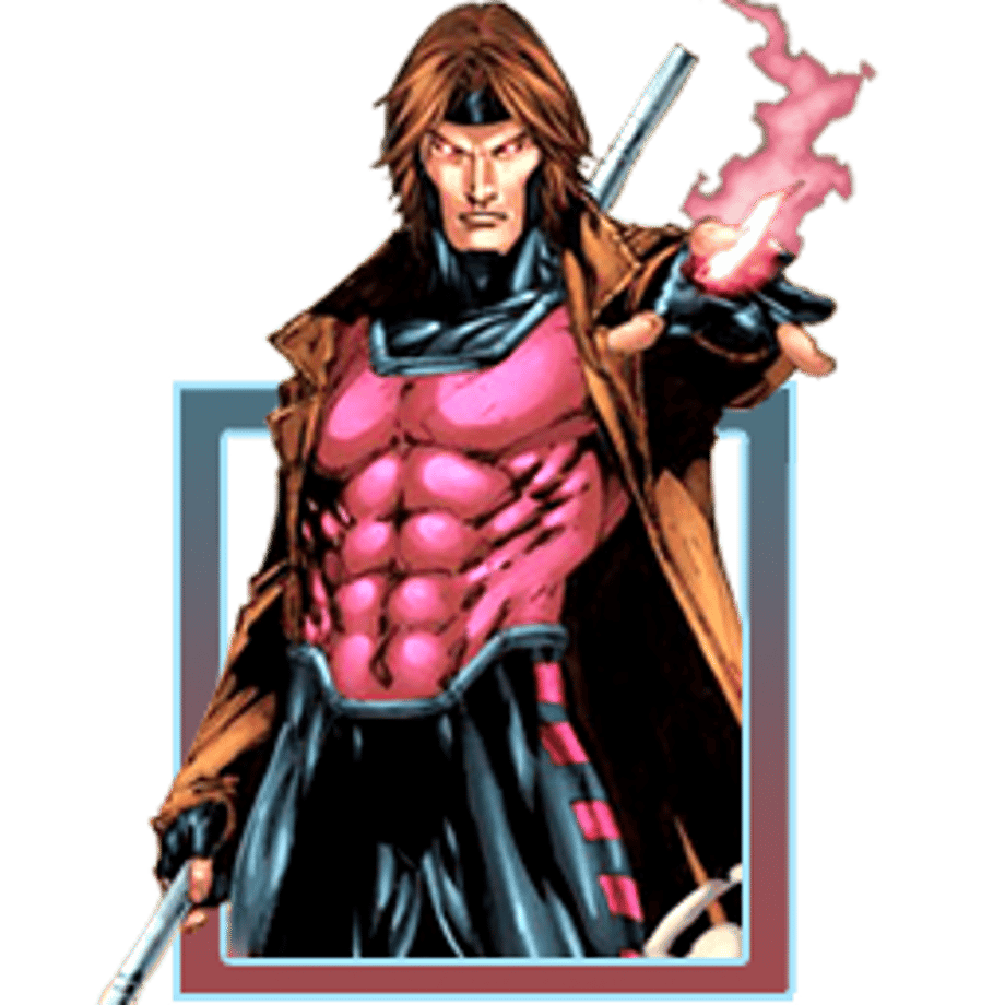 Gambit has the mutant ability to tap into the potential energy contained within an object and transform it into kinetic energy upon touching it. When Gambit thus charges an object and throws it at a target, the object releases this energy explosively on impact. Gambit is unable to use this power to charge living objects. / As Death: He can control deadly gas.
