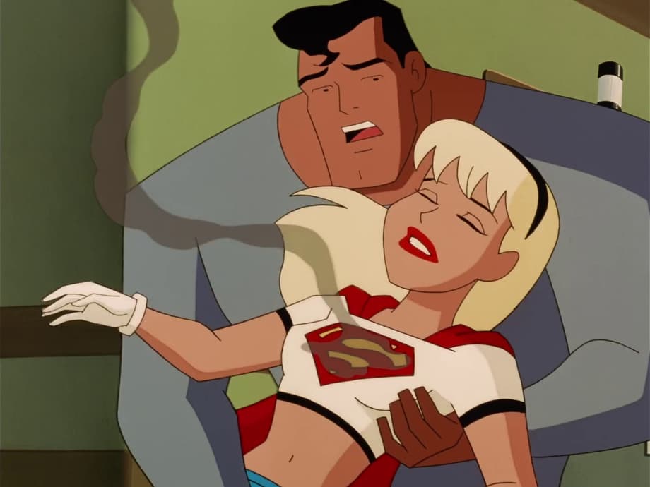 Steel plates cover the windows and walls of his office  and a red light shines from the ceiling. He informs Superman that this is red sun radiation and strips him of his powers. Superman tells Lex something like "Even without my powers, locking yourself in a room with me after all you've done wasn't a good idea." Lex responds "Of course not. That's why I have this." He opens a little lead box revealing a glowing green ring.(OMG! Lex is a Green Lantern! No. Just kidding.) Superman stumbles backward. Lex slips on the ring and says "A radioactive piece of your home planet. I call it kryptonite. To humans it's harmless, but to you- (Superman tries to punch Lex but the affects of the kryptonite have weakened him and slowed him down. Lex easily dodges the punch and punches Superman in the face with the ring, knocking him to his knees) it's fatal. And there's just so much more where this came from!" Lex kicks Superman around a bit and then knocks him unconscious.