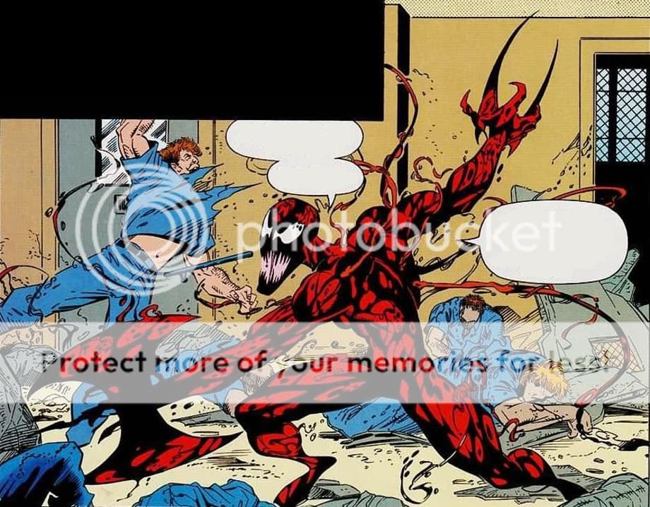 -Eddie Brock becomes Venom again after traces of the symbiote hidden in his bloodstream reemerge; the symbiote also reproduces, with a red-and-black one emerging and bonding with Brock's fellow patient at Ravencroft Cletus Kasady, turning him into Carnage.