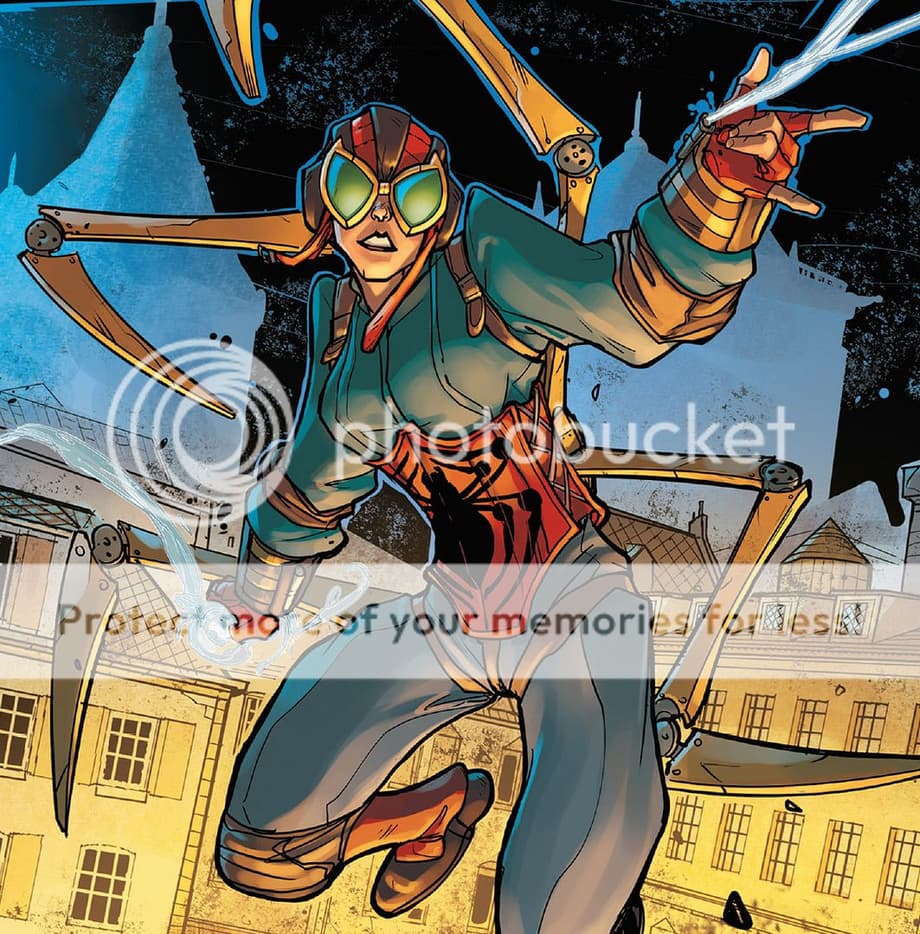 -A small mini-arc focuses on Doctor Octopus and three of his admirers: Oliver Osnick (aka Steel Spider), who he'd been mentoring while in hiding; and best friends Carolyn Trainer and Angelina Brancale (Carrie and Angie between them), who he'd been corresponding with via email about their research into nanites. The arc sees the latter two take up their identities of, respectively, Lady Octopus and Stunner, while Ollie becomes the victim of Otto's machinations in a story inspired by the 'Dying Wish' story arc. In this case, Otto decides to 'revitalize' himself by hijacking Ollie's younger body, with the help of tech developed by him, Carrie (bearing a jealous grudge against Scarlet Spider for the bond he and her father developed) and Angie (devoted to her friend). The situation humbles Ollie, forcing him to seek out Peter and Ben's help.