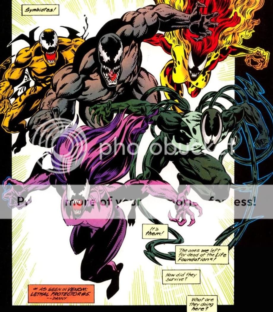 -Peter learns from SHIELD commander Steve Rogers of a rogue experiment by the mysterious Life Foundation intending to clone symbiotes for use by soldiers in battle. Reluctantly, Spidey calls on Venom's aid in stopping the experiment (which Venom agrees to when he learns his ex-girlfriend Anne Weying is interning with Life Foundation's legal department), which results in the five symbiotes--dubbed Scream, Riot, Agony, Lasher, and Phage--being subdued and taken into SHIELD custody. The symbiotes later come in handy when Manhattan undergoes the events of 'Spider-Island'.