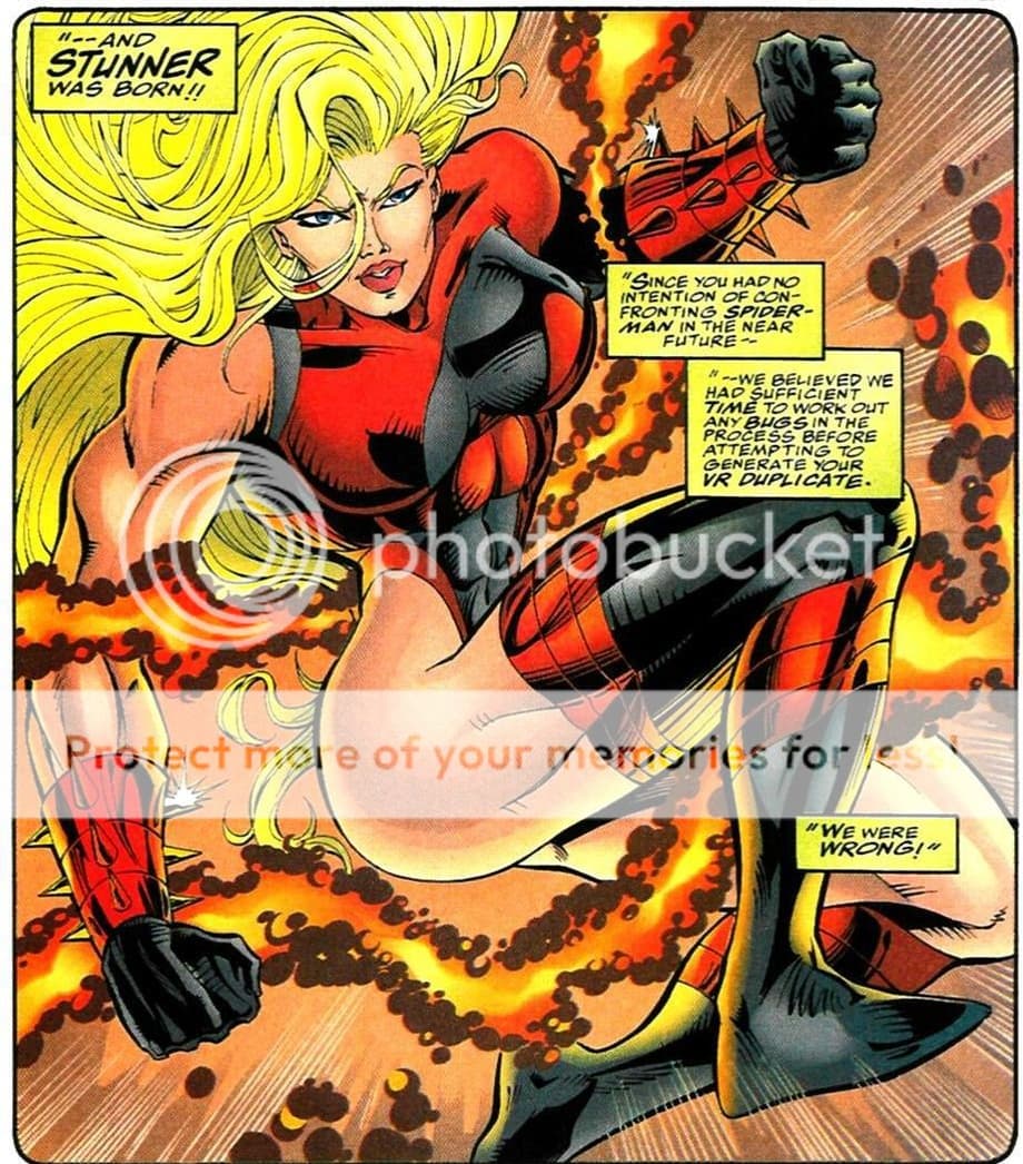 1. One went on the road under the name 'Ben Reilly', taking odd jobs here and there while, having not forgetten the idea of 'power and responsibility', adopting his own heroic persona as the Scarlet Spider to help people along the way. (Think a solo version of The A-Team's main shtick.) One of those involved working with scientist Seward Trainer and his daughter Carolyn, the latter of whom comes into play later...