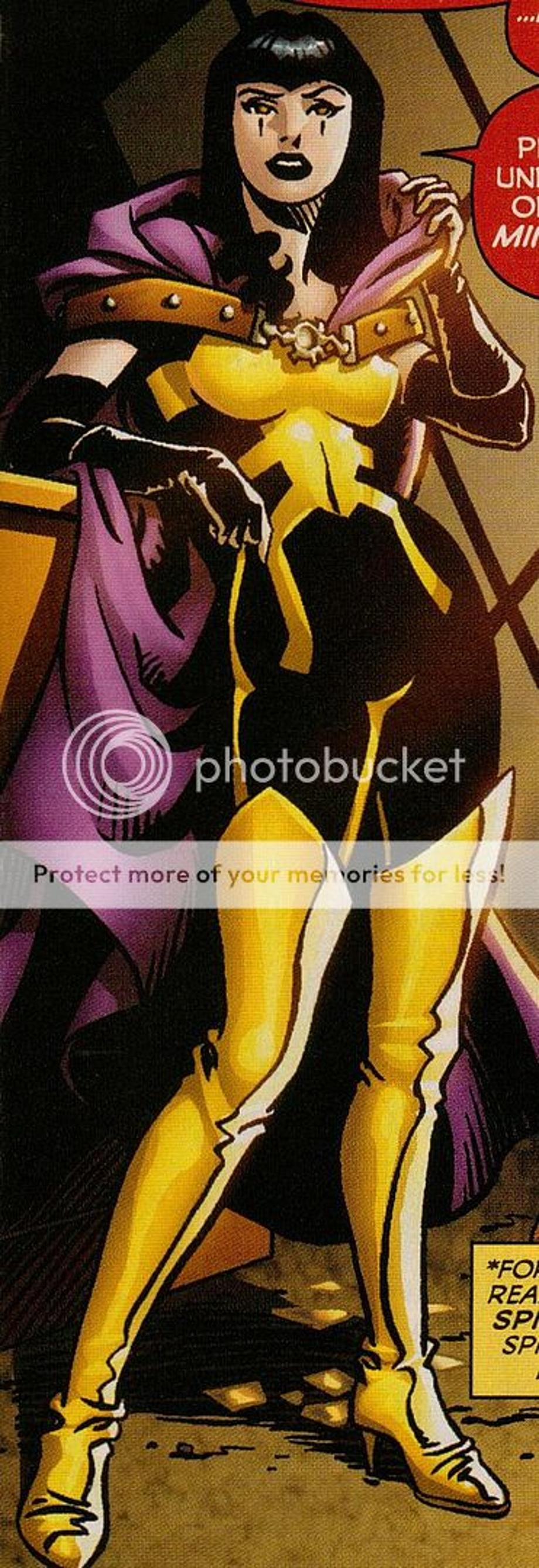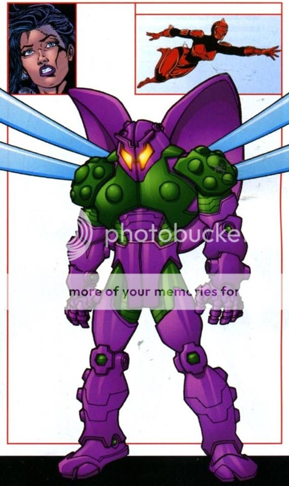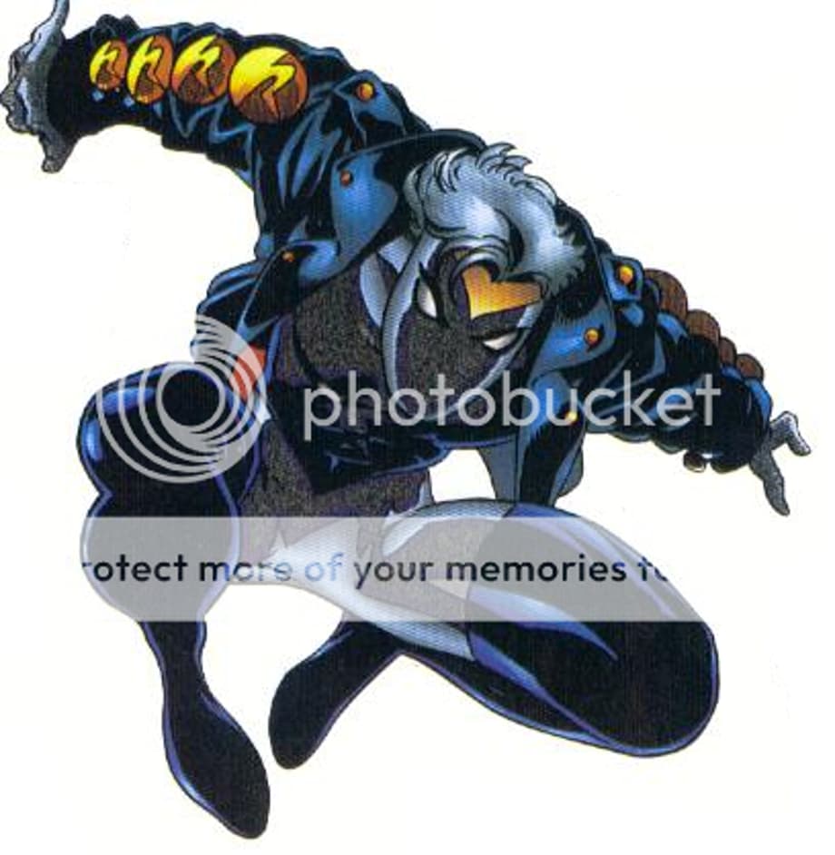 Strikeback's wife and a skilled getaway driver, armed with an armored suit originally designed by Abner Jenkins (formerly the criminal the Beetle and currently the Thunderbolt Mach-1).