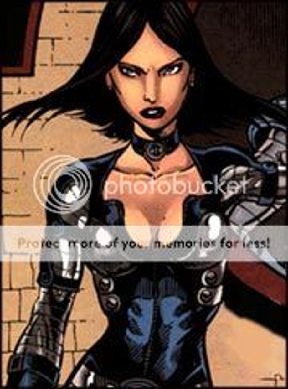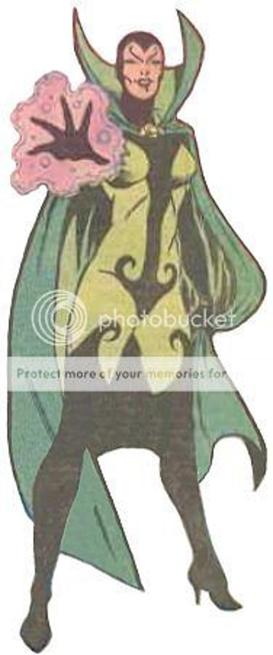 "Born a member of the British aristocracy with the power to make people experience their worst fears, Angela Hawkins III was a "bad seed" who rejected any help from her family. When the Brain came to London to recruit her for the reformation of the Fraternity of Evil, Angela readily agreed. She joined the New Brotherhood of Evil in the hopes of conquering her own fears by unleashing those of others. Sometimes, man-hating tendencies rise up in her, and she suffers from a fear of being alone."
