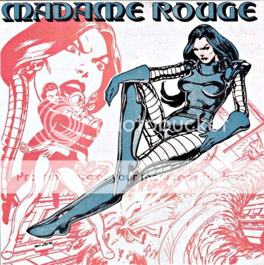 "Laura De Mille was originally a French stage actress who was linked romantically to Niles Caulder before he met Arani Desai. After an automobile accident, she developed a dual good/evil split personality. At this point, she attracted the notice of The Brain and his associate Monsieur Mallah. With Mallah's help, the Brain performed surgery on De Mille that was, from his perspective, successful, sublimating her good personality and allowing her evil personality to remain dominant. As Madame Rouge, De Mille became the only female member of the Brotherhood of Evil, and assisted the Brotherhood in its continuing conflicts against the Doom Patrol. At first, Madame Rouge was simply a master of disguise; subsequent surgery by the Brain eventually gave her the ability to alter her appearance and stretch her limbs. Elasti-Woman at one point mentions that she was a great admirer of De Mille's acting ability, having studied a number of her performances during her days in Hollywood."